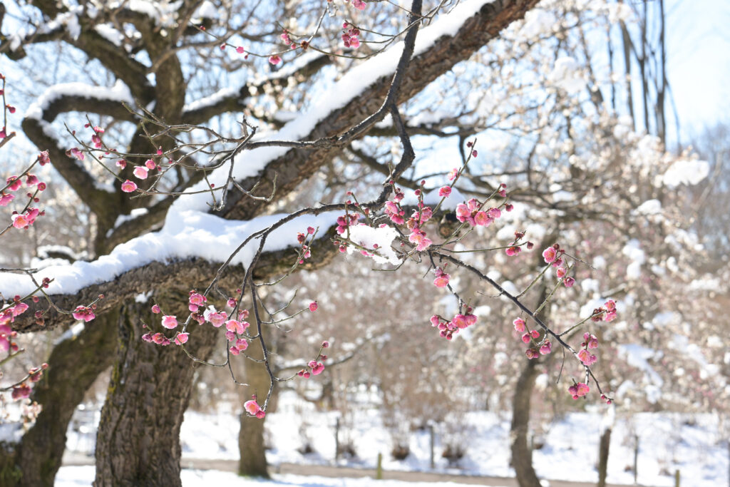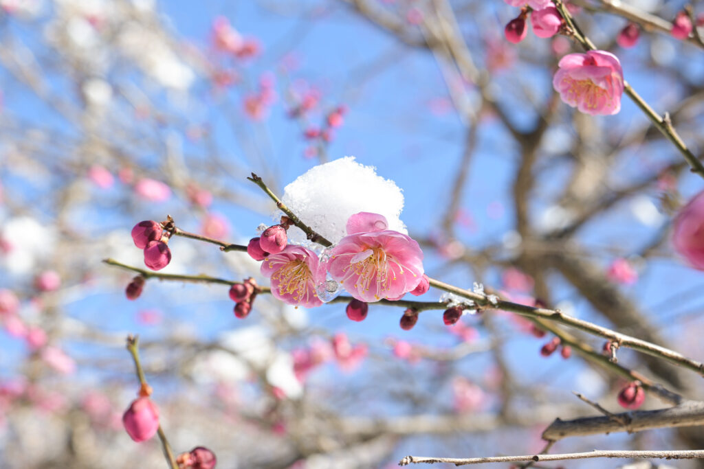 今年はタイミングよく、大雪が降った翌日に梅園を訪れることができました。