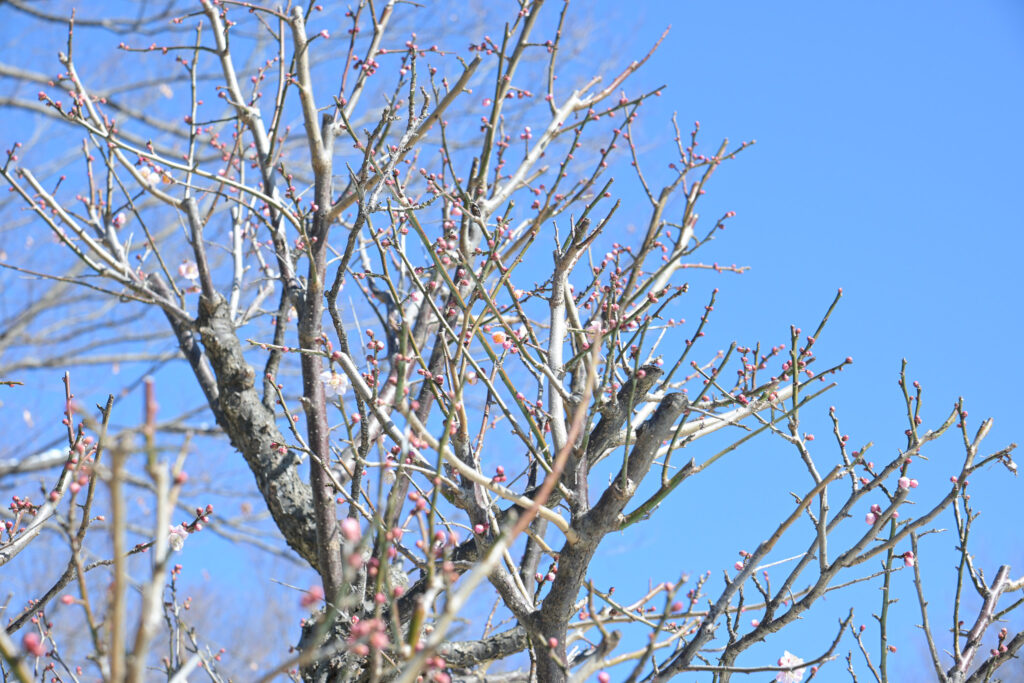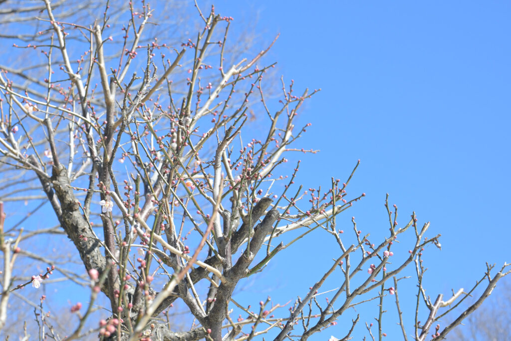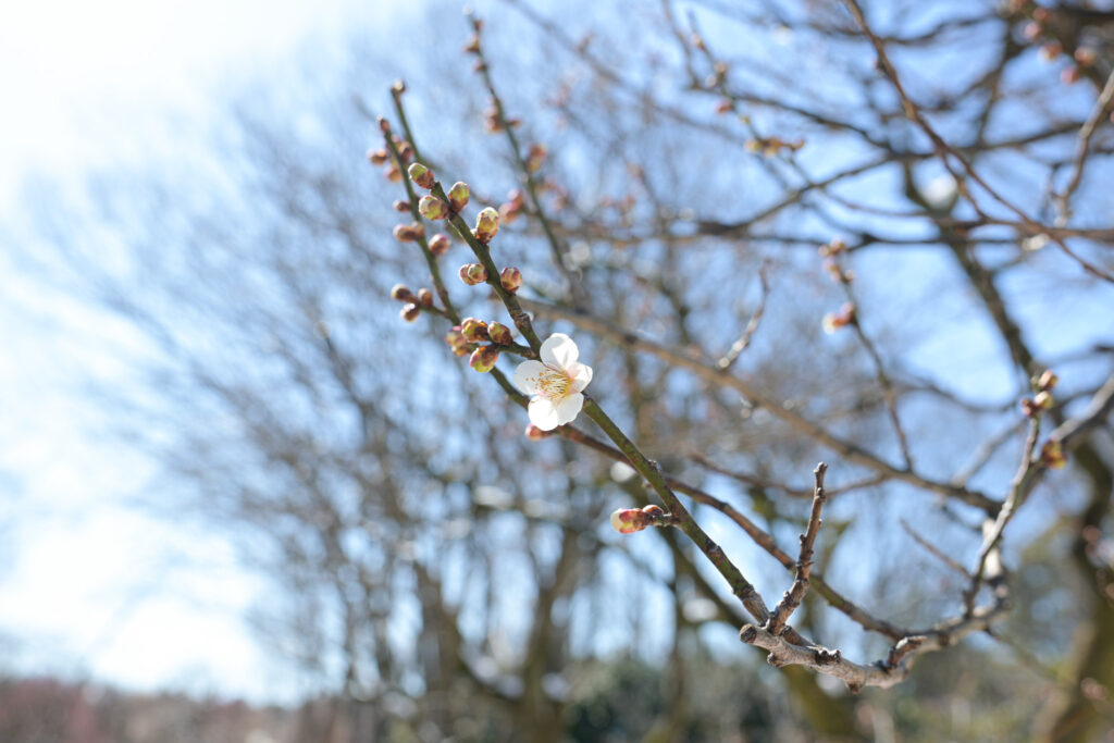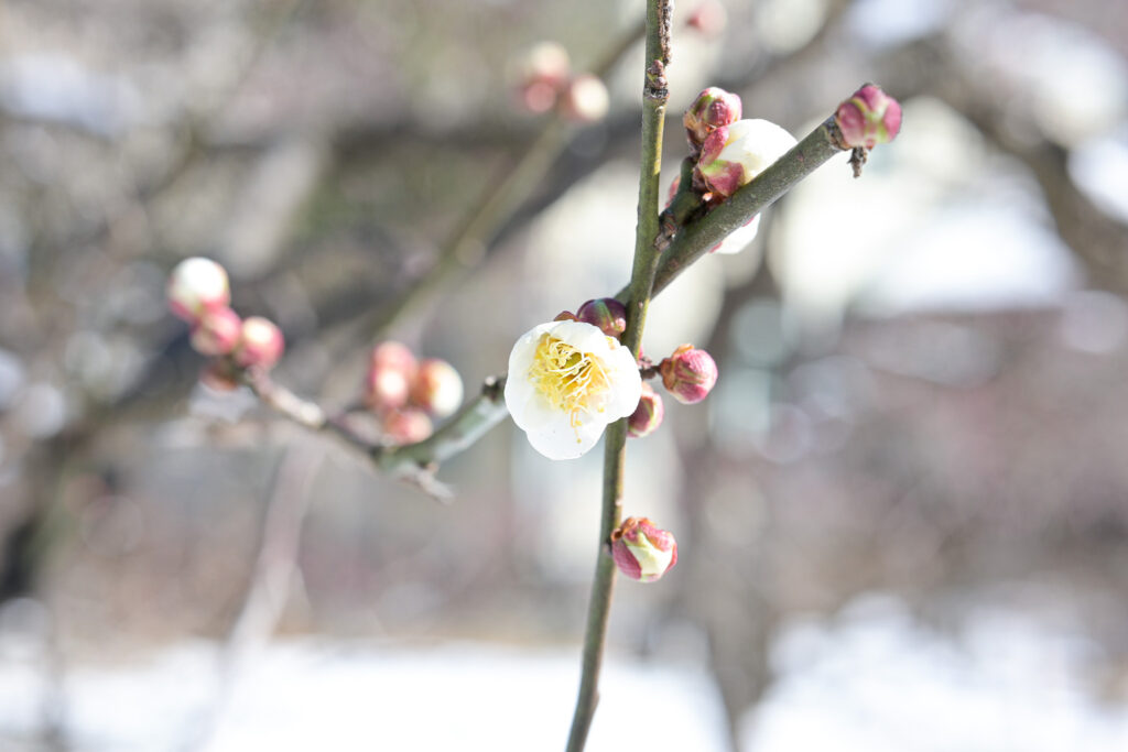 しかし、近くに寄って目を凝らせば、枝先で蕾がふっくらと膨らんでいます。そんな中、一輪だけ咲き始めている梅を見つけられたときは、この上ない喜びが込み上げます。